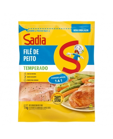 CONGELADOS>PROTEÍNAS>CORTES DE AVE>Filé De Peito De Frango Temperado Sem Pele Sem Osso Sadia 1Kg