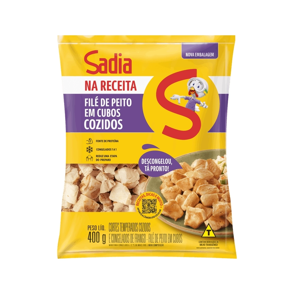 CONGELADOS>PROTEÍNAS>CORTES DE AVE>Peito De Frango Cozido Em Cubos Sadia Na Receita 400g