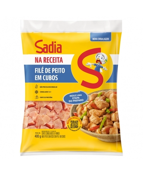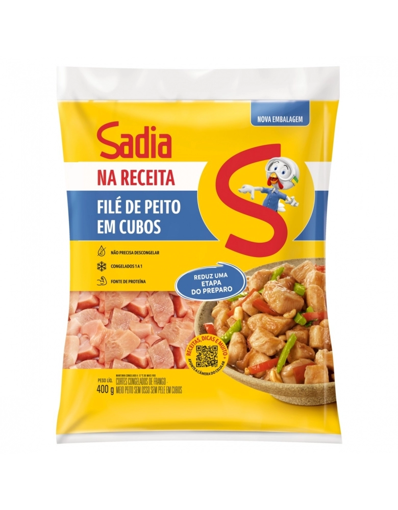CONGELADOS>PROTEÍNAS>CORTES DE AVE>Peito De Frango Em Cubos Sem Pele E Osso Sadia Na Receita 400g