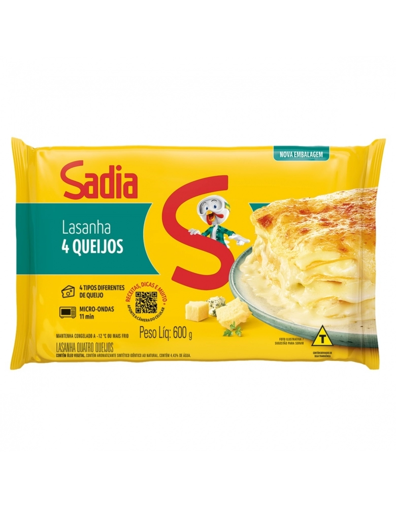 CONGELADOS>REFEIÇÃO>FAST FOOD>Lasanha Quatro Queijos Sadia 600g