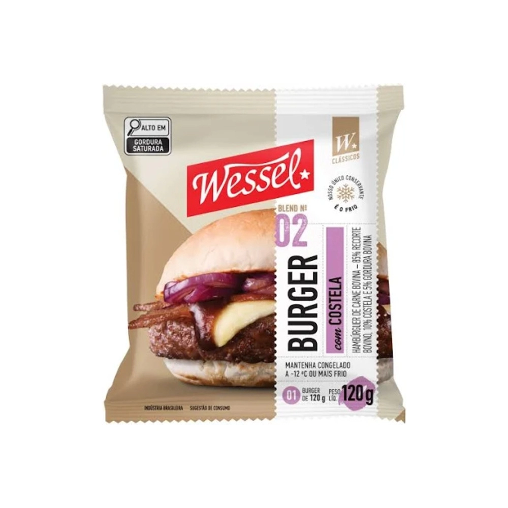 CONGELADOS>PROTEÍNAS>HAMBURGUER>Hamburguer Bovino Com Costela Sem Tempero Wessel 120g