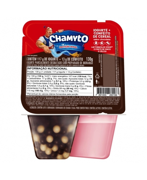 LATICÍNIOS>LEITE FERMENTADO>LEITE FERMENTADO>Iogurte Morango Mais Cereal Chocolate Chamyto 130g