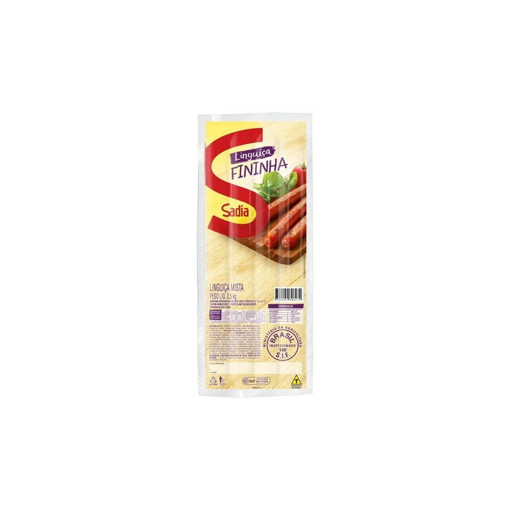 CONGELADOS>EMBUTIDOS>LINGUIÇA>Linguiça Mista Defumada Fininha Sadia 2,5Kg