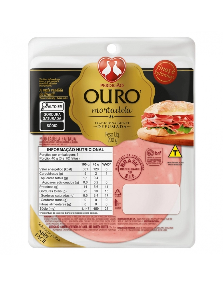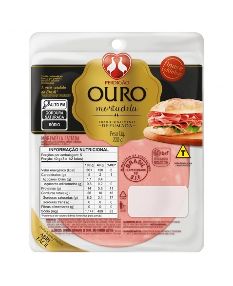 REFRIGERADOS>FRIOS>MORTADELA E SALAME>Mortadela Defumada Fatiada Perdigão Ouro 200g