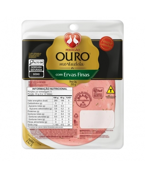 REFRIGERADOS>FRIOS>MORTADELA E SALAME>Mortadela Fatiada Perdigão Ouro Com Ervas Finas 200g