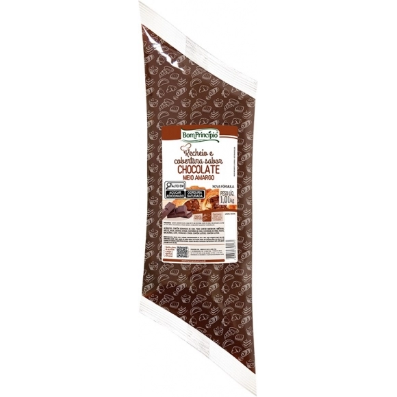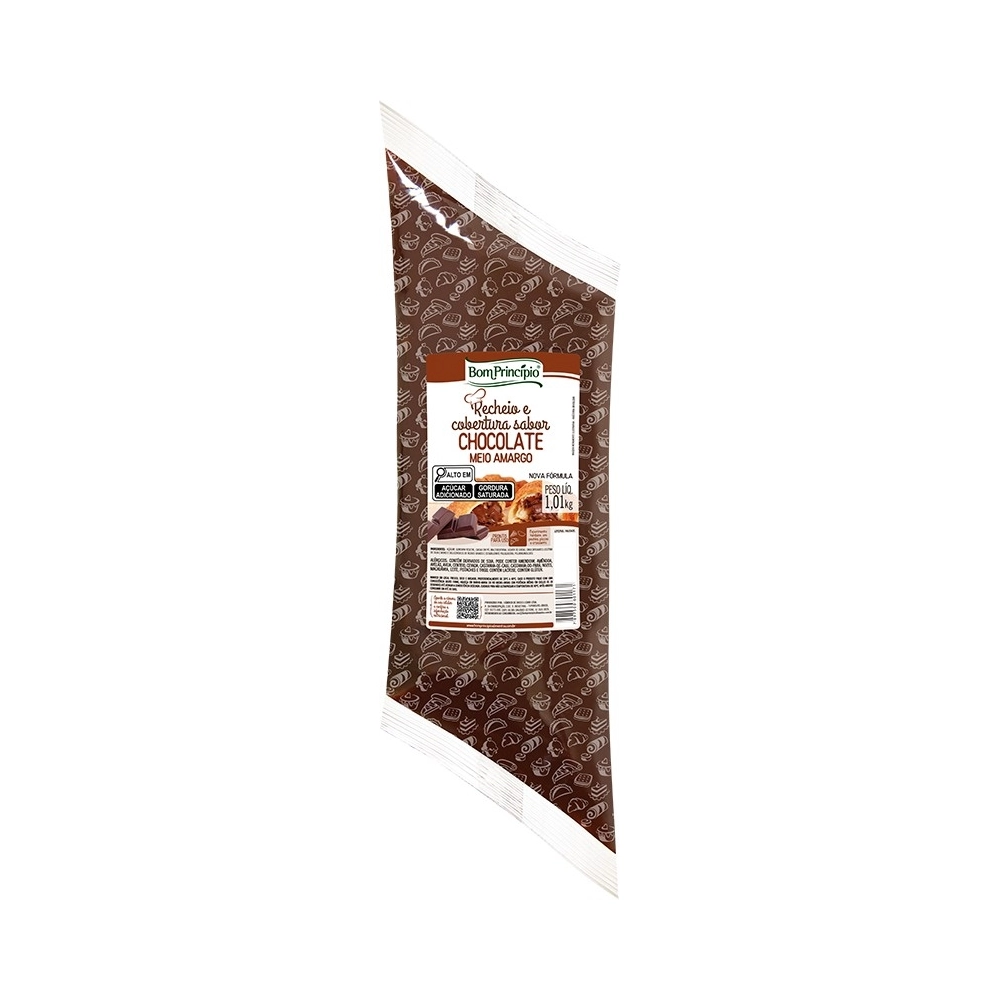 CONFEITARIA>RECHEIOS E COBERTURAS>Recheio E Cobertura Sabor Chocolate Meio Amargo Bisnaga Bom Princípio 1,01Kg