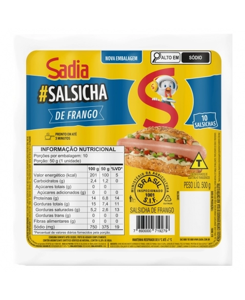 CONGELADOS>EMBUTIDOS>SALSICHA>Salsicha De Frango Sadia 500g