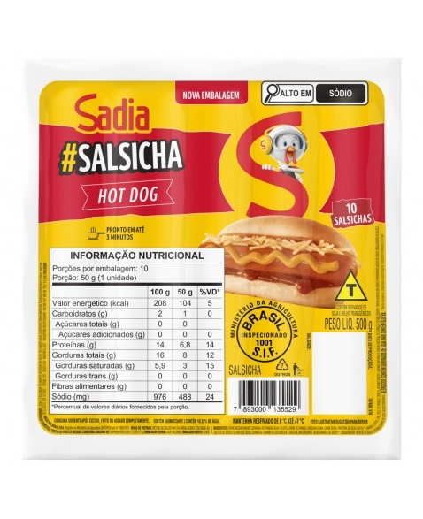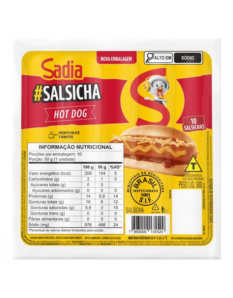 CONGELADOS>EMBUTIDOS>SALSICHA>Salsicha Hot Dog Sadia 500g